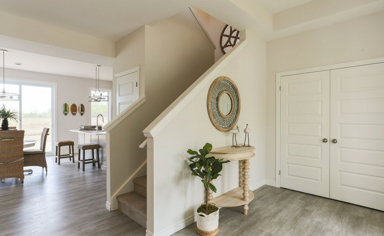 - Laminate Plank Flooring in Foyer, Main Floor Hallway, Kitchen, Dining Room & Living Room, Storage Room