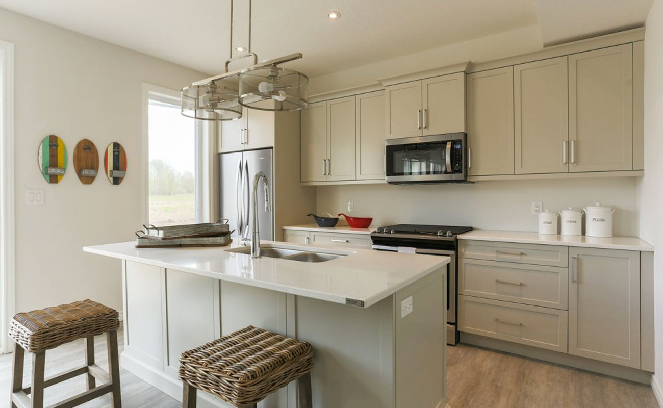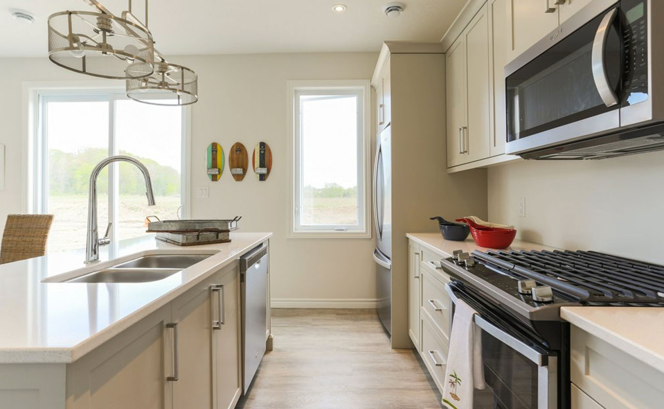 - Quartz Countertops in Kitchen with Under-Mount Sink & Chrome Single Lever Faucet